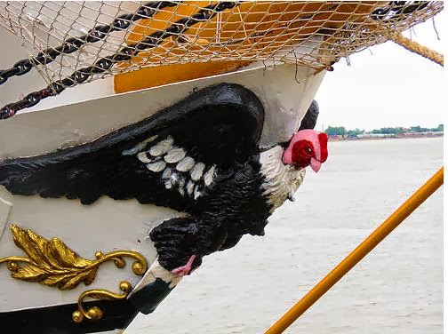 I have never been to Guayaquil but would love to go because it is supposed to be a beautiful city. It is called the Pearl of the Pacific. I saw the ship above in New Orleans a few years ago. It is the BAE Guayas, an Ecuadorean Navy training ship. I think it is beautiful. What made the ship memorable to me is the condor figurehead as show below.